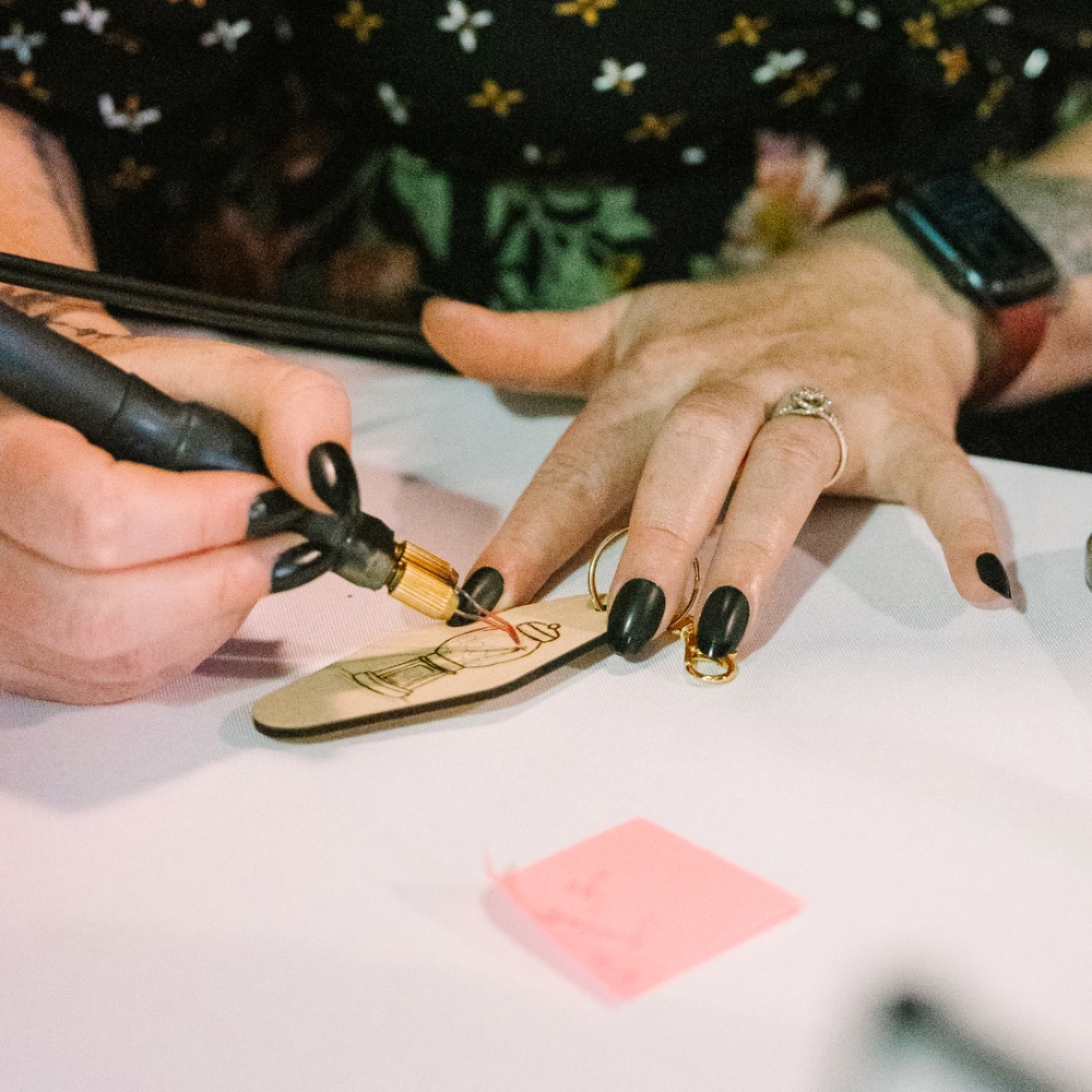 At the event, a team of talented artists joins me to hand-burn names, initials, or mini custom designs onto the back of each keychain—live and on-demand. Your guests walk away with something personalized, tactile, and truly memorable.