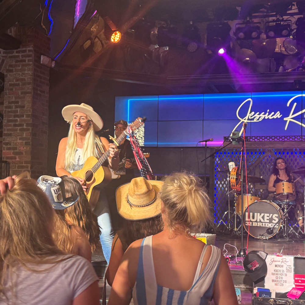 Jessica has shared the stage with some of the biggest names in country music, including Lainey Wilson, Carrie Underwood, Jason Aldean, Kenny Chesney, Jimmy Buffett, and Russell Dickerson. She plays over 240 shows per year including performances at major country music festivals as well as podcasts such as The Bobby Bones Show.