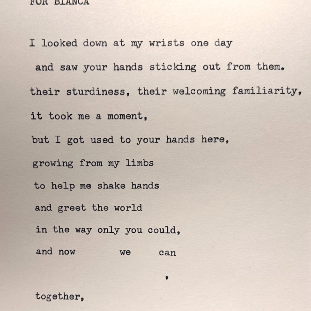 Live, custom poetry written on a vintage typewriter!